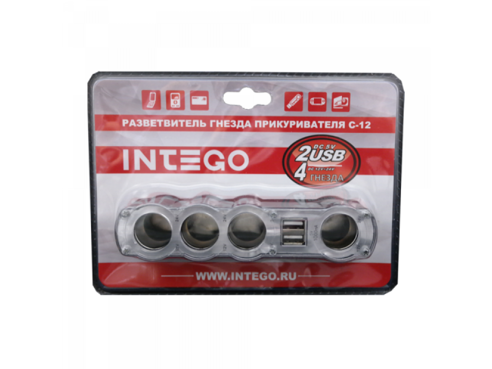 Разветвитель гнезда прикуривателя (12/24 В) на 4 входа с максимальным суммарным током нагрузки 10 А + зарядное устройство с 2 USB входами (5 V / 1000 mA).