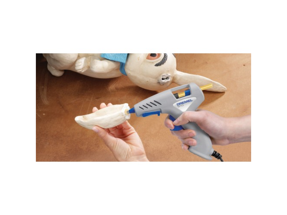 Защита от капель: предотвращает попадание капель клея на заготовку Высокотемпературный режим работы (195 °C): для работы с высокотемпературными клеевыми стержнями Кремниевые кожухи сопла: для предотвращения возгорания Выдвижная пластиковая подставка: для лёгкой установки клеевого пистолета в устойчивое положение нажатием кнопки Мягкий курок: требуется совсем небольшое усилие, чтобы нажать курок для постоянной подачи клея Выход клея 18 г/мин: для более сложных работ по склеиванию Эргономичная T-образная рукоятка с мягкой накладкой: для комфорта в работе Индикатор питания: показывает включение инструмента Переключатель: для ручного включения и выключения инструмента Съёмный кабель: для обеспечения ограниченного времени работы без питания Время нагрева 5 мин: для быстрой работы Подходит для клеевых стержней 11/12 мм Комплектация: Клеевой пистолет DREMEL 940 3x универсальных высокотемпературных клеевых стержня Dremel 11 мм Инструкция по эксплуатации Напряжение: 100 - 240 В Вес: 0,30 кг Длина: 20 см Ширина: 4,5 см Глубина: 20 см Высокая температура: 195 °C Диаметр клеевого стержня: 11 мм Точные сверла: + Две рабочих температуры: - Съемный шнур: + Контроль от подтеканий: +