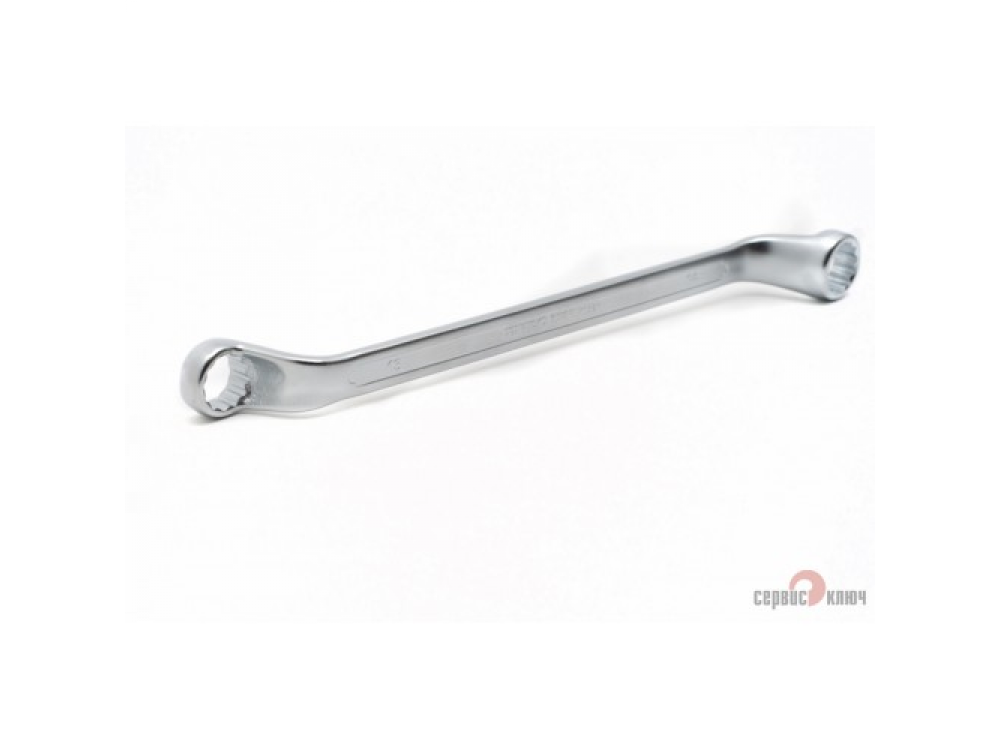Двусторонний накидной ключ со смещением. Имеет на обоих концах 12-гранные накидные профили. Накидной профиль со смещением предоставляет более широкие возможности при работе в ограниченном пространстве. Изготовлен из высококачественной хромованадиевой (Crv) стали методом холодного штампа, тверность 40-45 HRC.