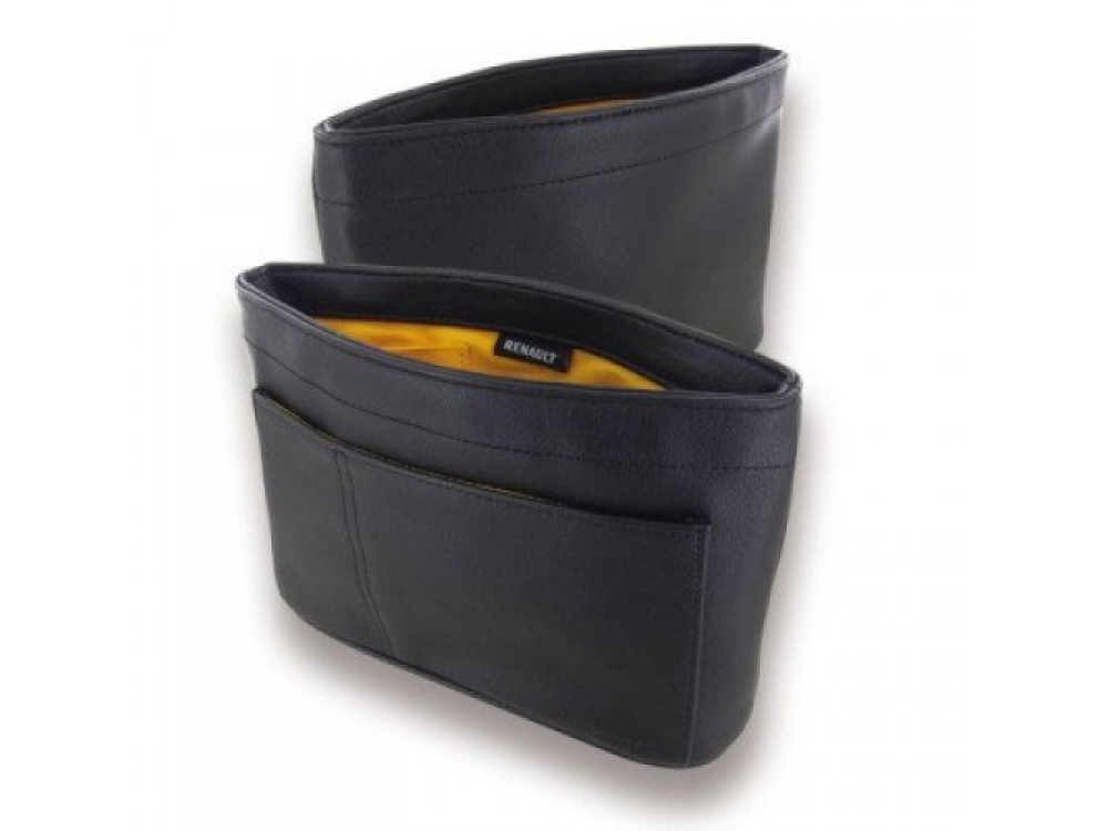 Из зернистой кожи кожи. Закрывается на магнитный замок. Имеет множество отсеков. Брелок с карабином внутри. Желтая подкладка из хлопка. Цвет: черный / желтый. Тиснение логотипа Renault на передней стороне сумки. Размеры: 225 x 155 x 65 мм. Поставляется в подарочной коробке Renault.