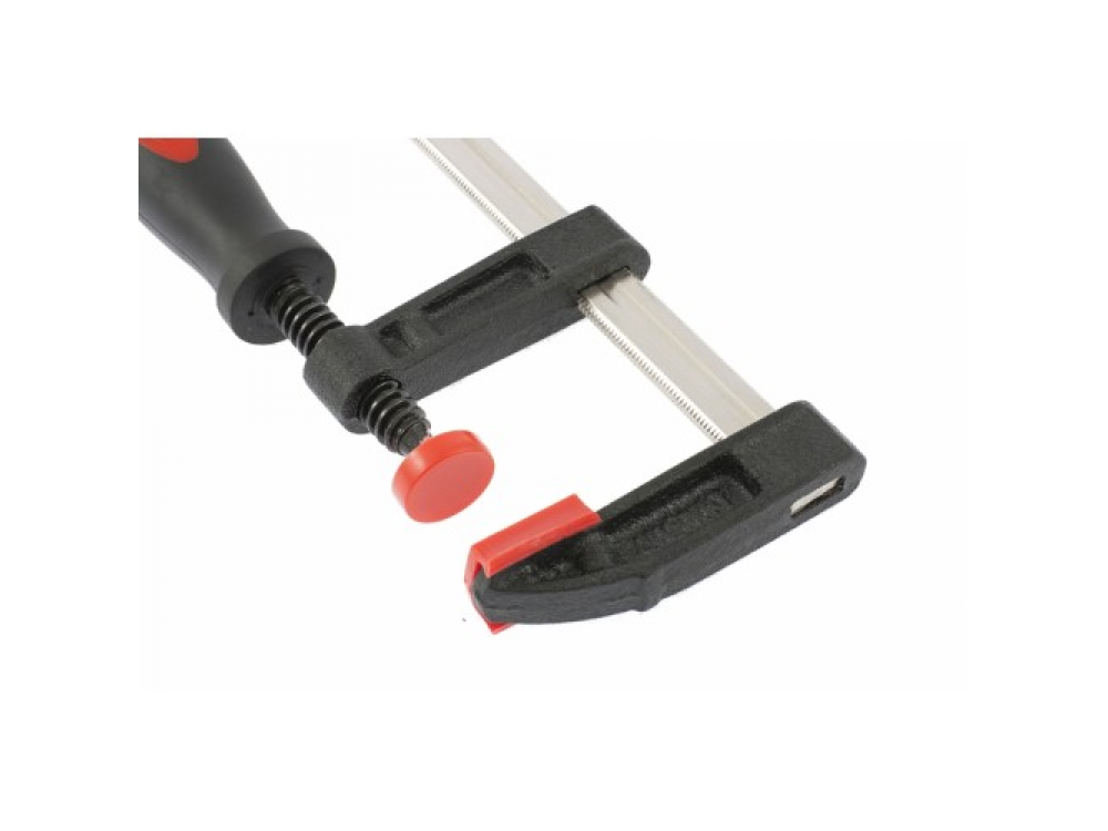 Один из кронштейнов установлен на направляющей жестко и не подвижно.Другой перемещается для регулировки захвата и оснащен винтовым зажимом.Губки кронштейнов снабжены пластиковыми накладками для защиты обрабатываемых предметов от повреждения при их обработке.Винтовой зажим на подвижном кронштейне оснащен эргономичной двухкомпонентной обрезиненной рукояткой обеспечивающий комфорт в работе.
