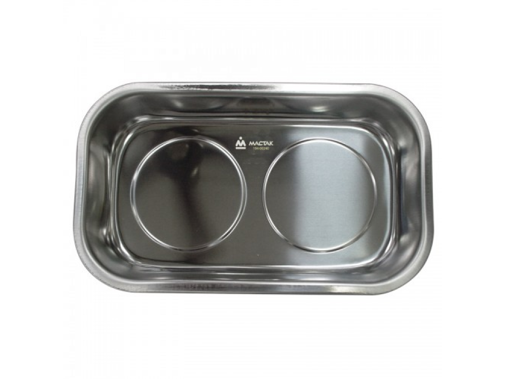 Поддон магнитный, 240х140 мм, МАСТАК 194-00240 применяется для сбора мелкого крепежа и деталей при ремонтных работах, а также для хранения. При помощи мощных магнитов поддон надёжно устанавливается на любую железную поверхность под любым углом, в зависимости от места ремонта. Технические характеристики: - Размер поддона: 240 х 140 х 30 мм - Материал поддона: нержавеющая сталь - Количество магнитов: 2 шт - Материал защиты магнитов: резиновый кожух - Тип магнита: ферримагнетик - Максимальная рабочая температура: 120°C